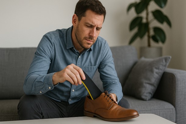 クッション性のある中敷きや、足の形に合わせたインソールを取り入れると、かかとへの衝撃をやわらげられるとされています。靴を選ぶときは、かかと部分がしっかりフィットして安定するタイプを選ぶのが理想的です。