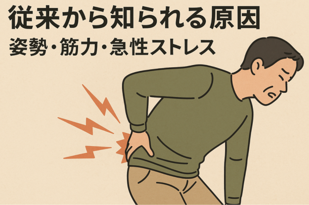 従来から知られる原因:姿勢・筋力・急性ストレス