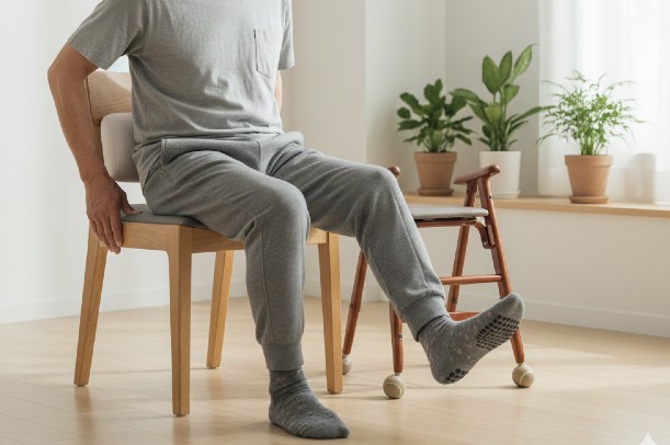 椅子に浅く腰かけ、つま先を軽く持ち上げながら太ももに力を入れる練習は、自宅でも取り組みやすい方法として紹介されています。