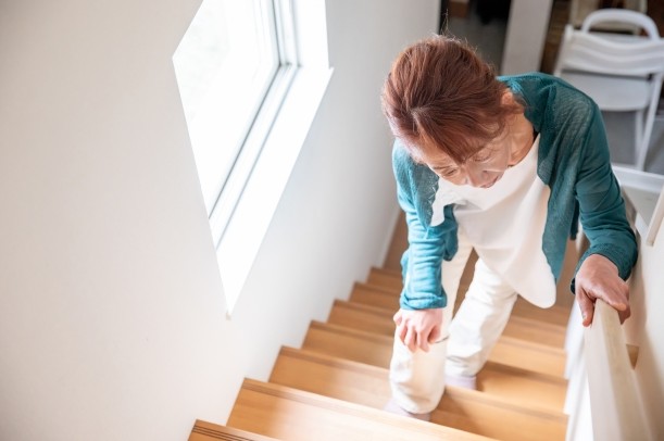 階段の昇降では、お尻で支えるイメージを持つと膝への負荷が和らぎやすいとされています。