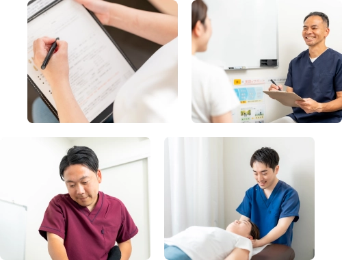一貫した担当者が継続的にあなたの状態を把握することで、体の小さな変化も見逃しません。安心して施術に専念いただける体制を整えています。 -